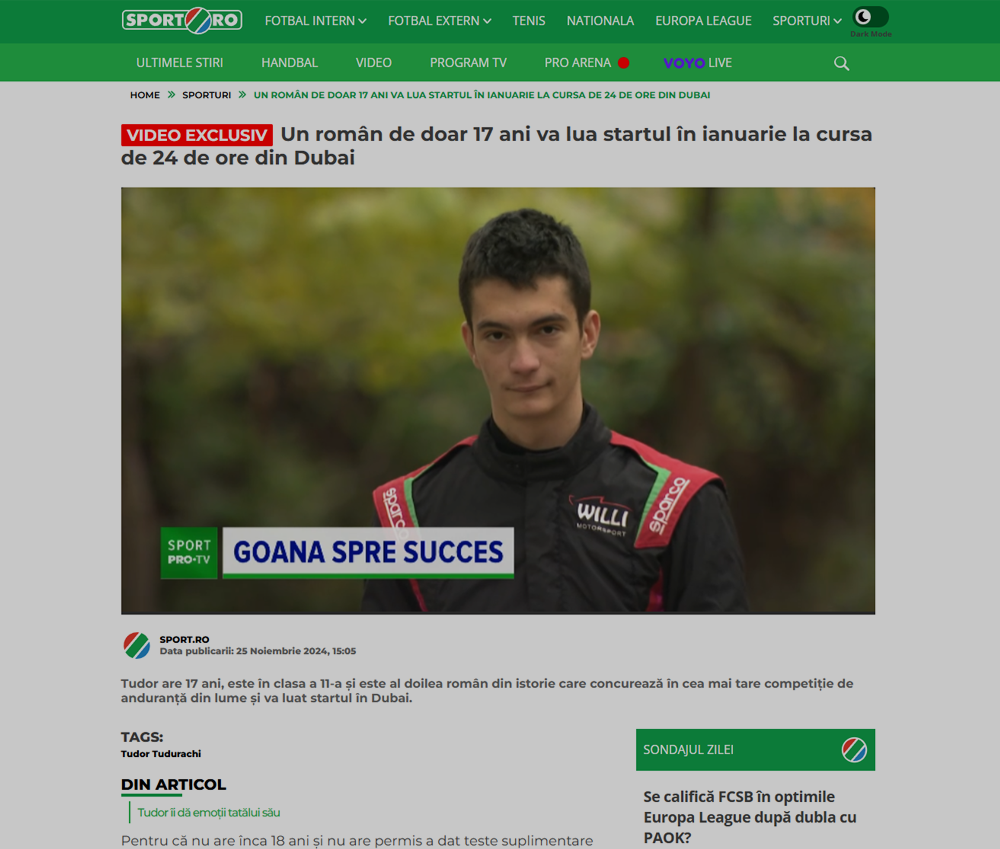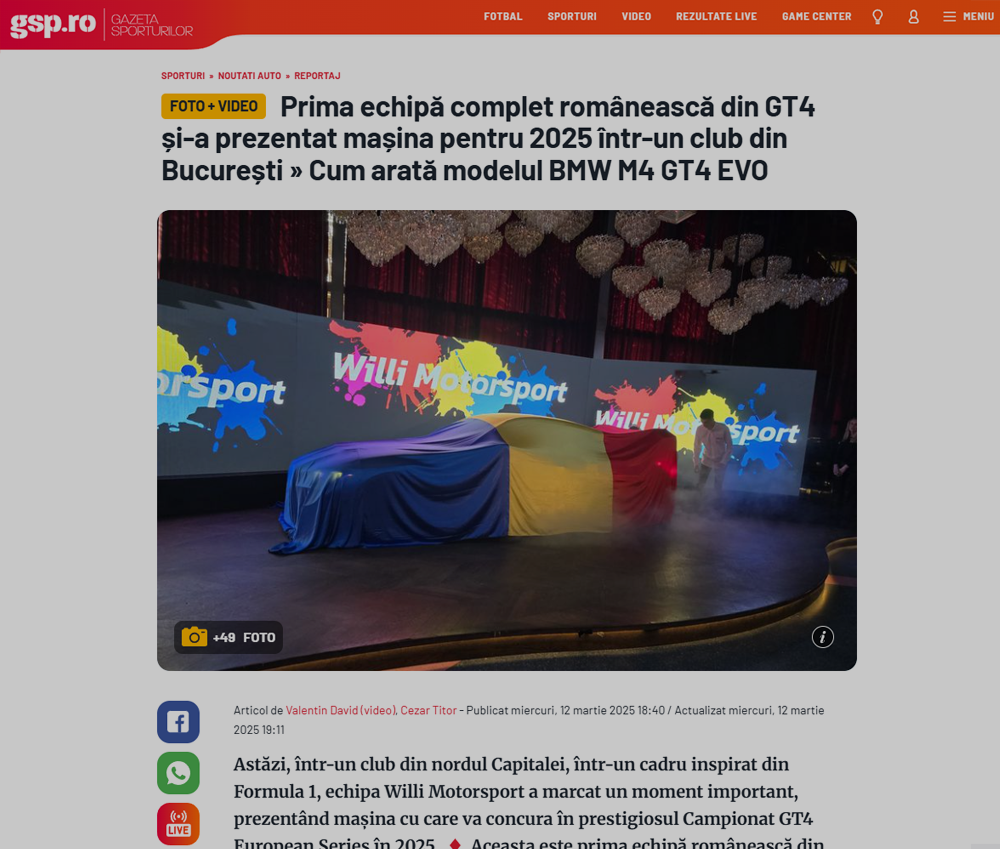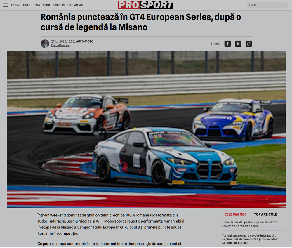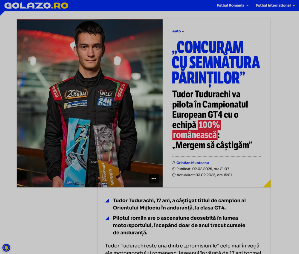 2025 a fost anul meu de debut în GT4 European Series, unde am reprezentat România alături de echipa Willi Motorsport. Am încheiat sezonul cu o evoluție puternică, obținând locul 4 în ultima cursă, la Barcelona. A fost o experiență incredibilă și un pas mare înainte spre visul meu.